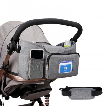 Mini Diaper Bag Stroller Organizer with Cup Holders and Shoulder Strap