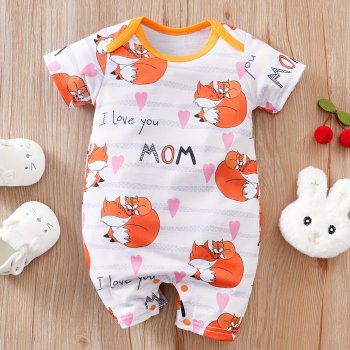 Adorable Baby Fox “I Love You Mommy” Romper – Soft Short Sleeve Bodysuit