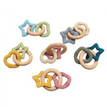 3-in-1 Silicone Star Teething Toy with Wooden Ring – BPA Free for Babies